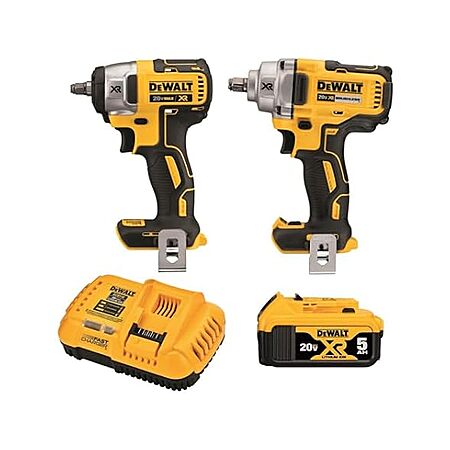 DEWALT DCK205P1 20V MAX Impact Wrench, Cordless 2-Tool Combo Kit, 1/2-Inch Mid-Range and 3/8-inch Compact with 5ah Battery and Charger $249