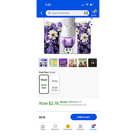 $3 WM Cash + Air Wick Plug-In Scented Oil Air Freshener Warmer Starter Kit, Lavender and Chamomile, 2 Piece YMMV $2.78