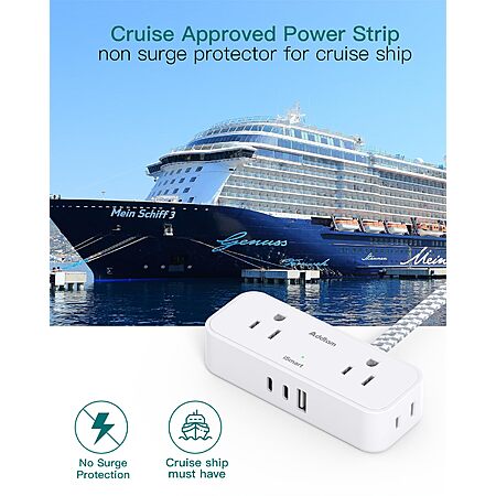 Royal Caribbean and Celebrity do not allow corded power strips. They will confiscate this at the pier and return it to you when you disembark. Do NOT buy for a cruise ship!!