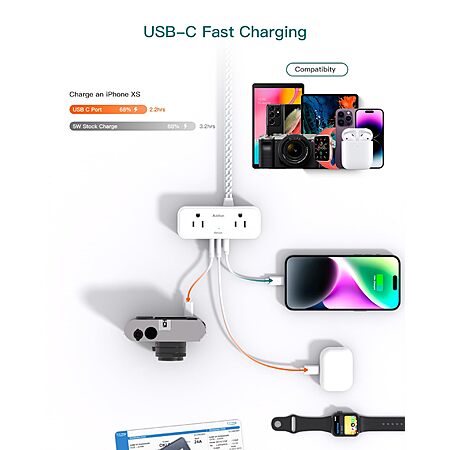 $7.99 for Travel Essentials, 6 Ft Power Strip with 4 Outlets and 3 USB Ports(2 USB C) @AMAZON PRIME