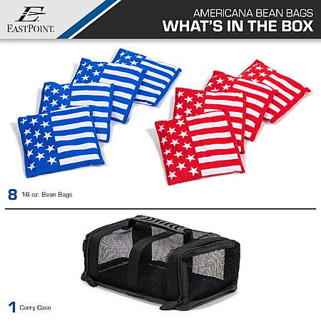 EastPoint Sports Americana Canvas Beanbags - 8 Count 16 oz 6" x 6" W/ Carry Case $6