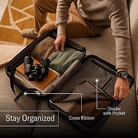 • Spacious & Organized: The interior offers generous packing capacity, complete with elastic straps, a divider, and a pouch to keep your belongings secure and neatly arranged. With four oversized, multidirectional spinner wheels and a lightweight hard case, the suitcase moves effortlessly in all directions.