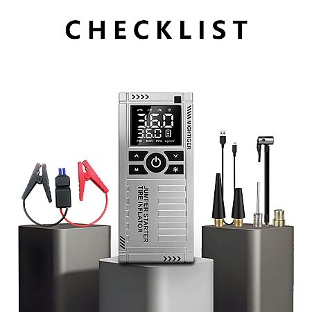 Package Contents: Jump starter with air compressor、smart clips、Vehicle cable、Type-C charging cable、4 nozzles、storage bag、user's manual.
