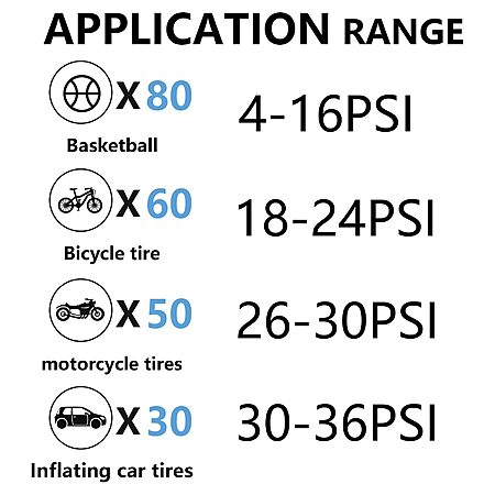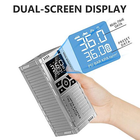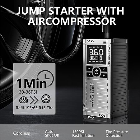 2 In 1:Inflates a tire (30-36 psi) in < 1.5 mins and can handle 30 such tires per charge.