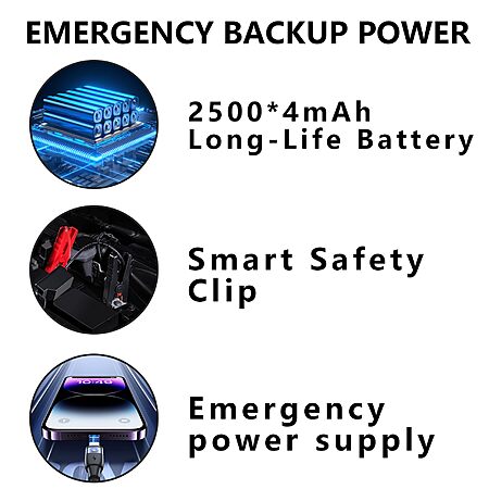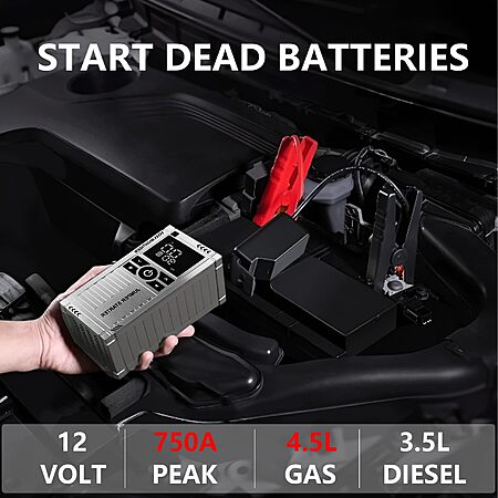Powerful: 850A peak current to jumpstart 5L diesel/3.5L gas engines.