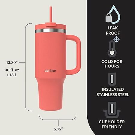 $10.43* | 40-Oz Contigo Streeterville Insulated Tumbler w/ Straw (Coral) at Amazon