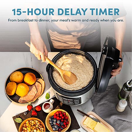 - EASY DIGITAL CONTROLS: Easy-to-use, programmable functions make cooking simple. Automatically switches to Keep Warm after each cycle so your meals stay hot and ready to serve.