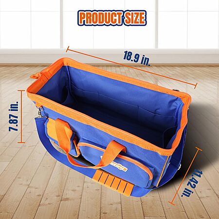 Amazon.com has WADFOW 19-inch Tool Bag, Waterproof Wide Mouth Storage Bag with Adjustable Shoulder Straps for Professional and Daily Use,Blue and Orange on sale for $17.31. Shipping is free with Prime or on $35+ orders.