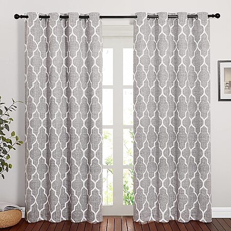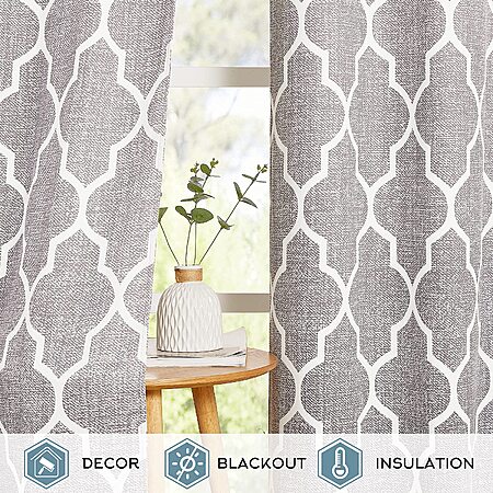 Model: KGORGE Grey Curtains for Living Room, Blackout Linen Look Curtains and Drapes Elegant Privacy Lattice Backdrops for Party Bedroom Decoration Window Treatment, W52 x L84, 2 Panels Set