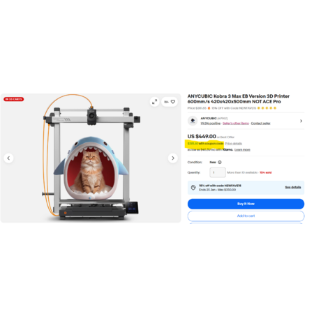 EBAY $381.65 Kobra 3 Max printer only after 15% off with NEWFAVE15