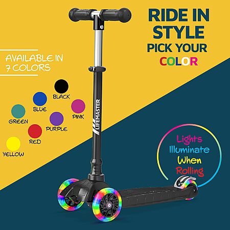 Amazon.com has Lifemaster Mini 3-Wheel Kids Scooter with Multi-Color Wheel Lights – 4-Height Adjustable Handlebar, Wide Anti-Slip Deck, Child Safety Certified, Boys & Girls Ages 2+ Supports Up to 110 lbs on sale for $21.29.