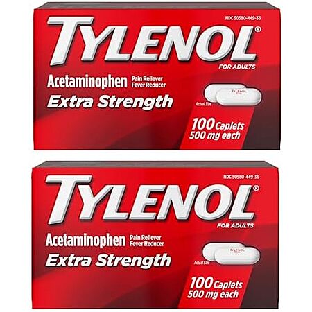 [S&S] $9.27 | 2-Pack 100-Count Tylenol Extra Strength Pain Reliever and Fever Reducer Caplets, 500 mg Acetaminophen at Amazon