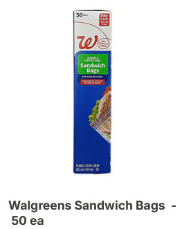 Select Walgreens Food Storage Bags (Various Sizes) - 3/$2.22 ($0.74 each) + free store pickup on $10+