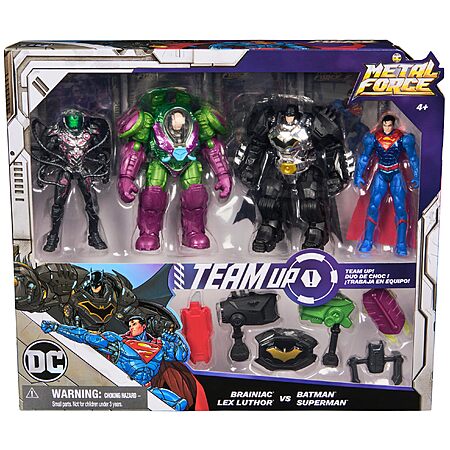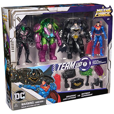$10.99*:DC Comics Metal Force Team Up – Brainiac & Lex Luthor vs Batman & Superman 4" Action Figures, Exclusive Accessories, for Boys 4+