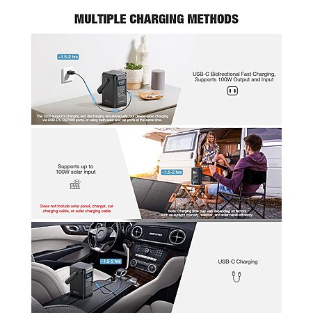 • [FAST CHARGING] GRECELL 240W portable power supply with 153.6Wh/48000mAh capacity, equipped with 5 output ports and 2 input options, supports charging multiple devices. Providing Type-C 100W fast charging to meet various outdoor and emergency power needs. (Note: Wall charger not included! To unlock maximum charging speed, a 100W USB-C PD adapter is required!)
