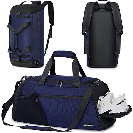40L BECOJADDE 5-in-1 Convertible Gym Duffle Bag w/ Shoe & Wet Compartment