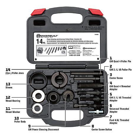 Powerbuilt Power Steering and Alternator Pulley Remove and Install Tool Set, Replace Vehicle Steering Pump, Car Repair Tools, Storage Case 648605. Used - Like New $29.78