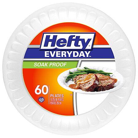 60-Count 10.25" Hefty Everyday Soak-Proof Foam Plates on sale for $4.79 - 15% when you 'clip' the coupon on product page - 5% when you check out via Subscribe & Save =