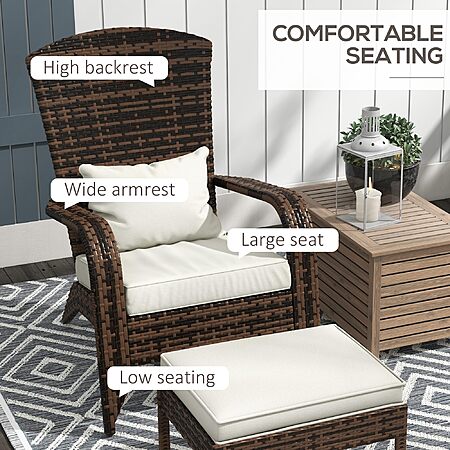 Outsunny Patio Wicker Adirondack Chair with Ottoman, Outdoor Fire Pit Chair with Cushions, High-Back, Large Seat & Armrests for Deck, Garden & Backyard, Cream White $107.99