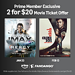 Activate Rewards via Fandango is offering an Amazon Prime Members Exclusive Movie Ticket Offer: Mercy + Crime 101 (2026) (Any Movie Ticket Format) on sale 2 for $20 valid for Amazon Prime Members only. Purchase your movie ticket at Fandango and select any available theater location/showtime near you.