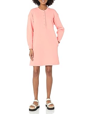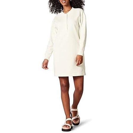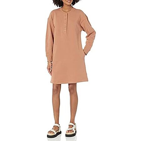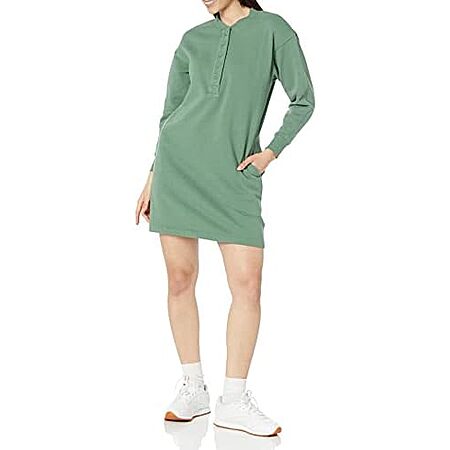 Model: Amazon Essentials Women's Knit Henley Sweatshirt Dress (Available in Plus Size), Dark Olive, Large