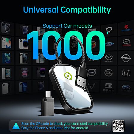 Wireless CarPlay Adapter for Apple iPhone, CarPlay 2024 Upgrade Plug & Play Auto Connect for Cars from 2015 & iPhone iOS 10+ Black Not for Tesla & Andorid $7.99 +FS w/Prime