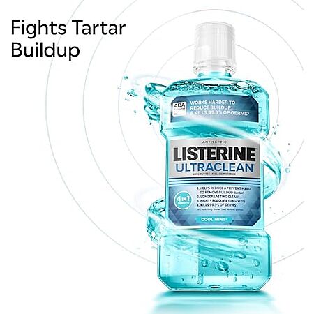 Model: Listerine Ultraclean Oral Care Antiseptic Mouthwash, Everfresh Technology to Help Fight Bad Breath, Gingivitis, Plaque & Tartar, ADA-Accepted Tartar Control Oral Rinse, Cool Mint, 1 L