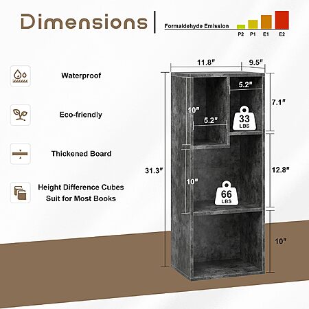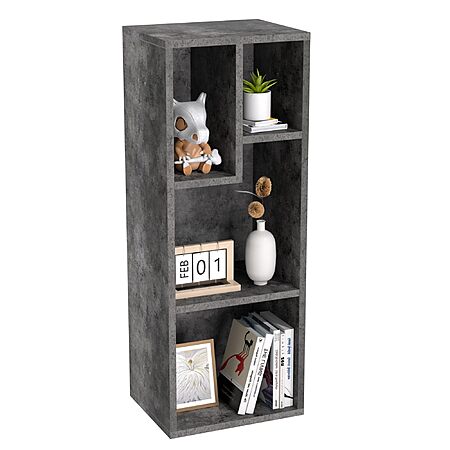 Model: VECELO 3-Tier Small Bookcase, 4 Cube Bookshelf with Height Difference Shelves for Most Books, Modern Floor Standing Unit, Each Shelf Hold Up to 66 LBS for Living Room Bedroom, Grey
