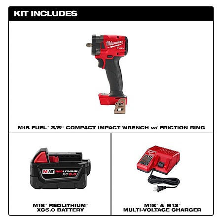 Milwaukee M18 FUEL GEN-3 18V Brushless Cordless 3/8 in. Compact Impact Wrench with One 5.0Ah Battery and Charger $189