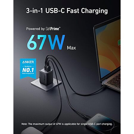 Model: Anker Prime 67W USB C Charger, Anker GaN Wall Charger, 3-Port Compact Fast PPS Charger, For MacBook Pro/Air, Pixelbook, iPad Pro, iPhone 15/14/Pro, Galaxy S23/S22, Note20, Pixel, Apple Watch, and More