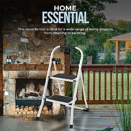 - 2-STEP LADDER: A tall step ladder provides ample height for your household tasks while anti-slip feet with offset legs help you maintain balance
