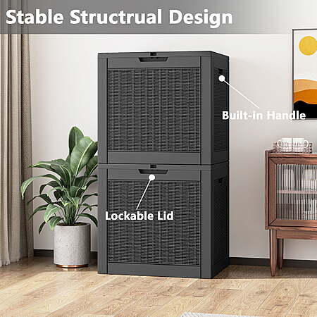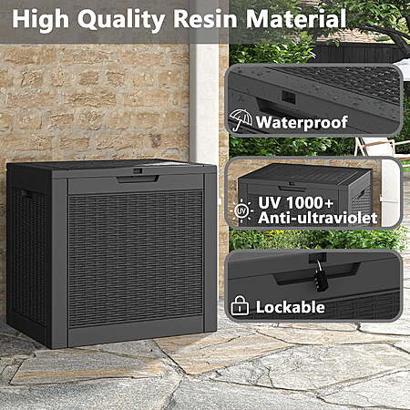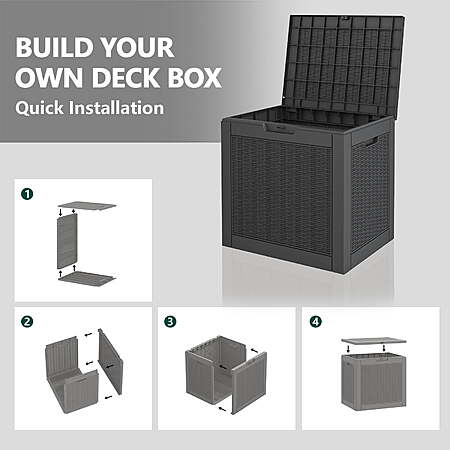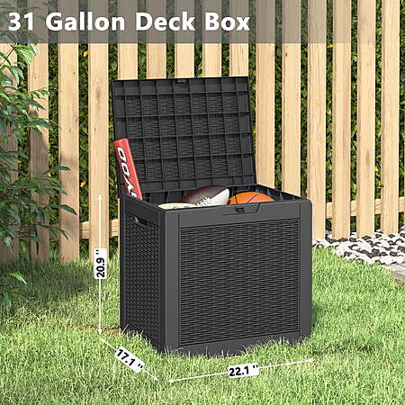 | Product Description: | The Bifanuo 31 Gallon Deck Box is a lightweight and durable resin storage solution, ideal for organizing garden tools, supplies, toys, and other outdoor items. It is designed to be waterproof and UV resistant, ensuring that your belongings are protected from the elements, including rain and sunlight. Easy to move and assemble, this versatile storage box is perfect for use on patios, decks, or in the garden, providing both practicality and convenience for keeping your outdoor space tidy. AMPLE STORAGE CAPACITY - With a spacious 31-gallon capacity, this deck box provides ample space to store cushions, children's toys, garden tools, sports equipment, and more, keeping your outdoor area organized and clutter-free. WATERPROOF AND UV PROTECTION - Crafted from durable resin material, this outdoor storage box is designed to withstand various weather conditions. It is waterproof, fade-resistant, and resistant to bending or breaking due to prolonged UV exposure, ensuring long-lasting use. EXTRA TABLE OR SEAT - This multifunctional deck box not only offers convenient storage but also serves as a comfortable single chair or table. With a maximum weight capacity of 265 pounds, it can easily accommodate adults, providing versatility and functionality. ENHANCED SECURITY AND PORTABILITY - The lock-hole design in the lid allows for added security by using a padlock (not included). Additionally, the built-in handles on both sides make it easy to carry and transport the storage box wherever you need it. EASY TO ASSEMBLE - Setting up this deck box is a breeze. Simply follow the provided instructions, connect the six side panels through the clasp, and you'll have a fully assembled box within just 10 minutes. Enjoy quick and hassle-free installation without the need for additional tools. |