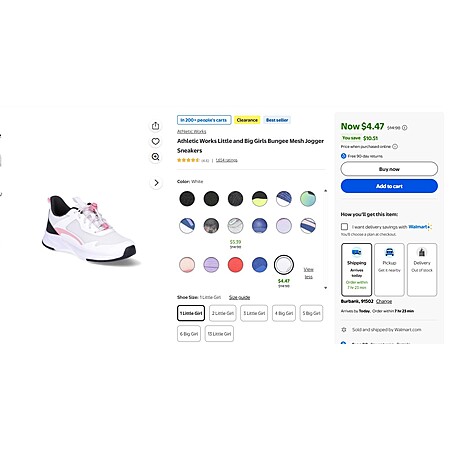 Athletic Works Little and Big Girls Bungee Mesh Jogger Sneakers $4.47+