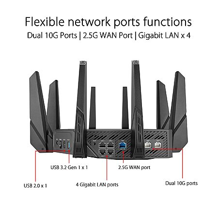 - Dual 10G ports – Enjoy up to 10X-faster data-transfer speeds for bandwidth-demanding tasks with two 10 Gbps WAN/LAN ports.
