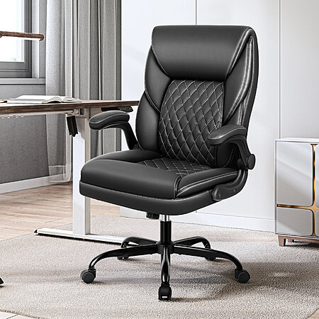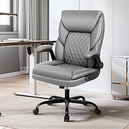 Red Barrel Studio Ergonomic Faux Leather Home Office Chair (Grey, Brown) $112 & More + Free Shipping