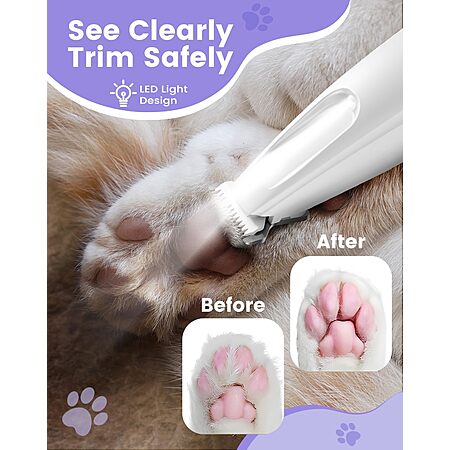 PAPMINI Dog & Cat Rechargeable Paw Trimmer w/ LED Light (White) $6.49 + Free Shipping w/ Prime or on $35+