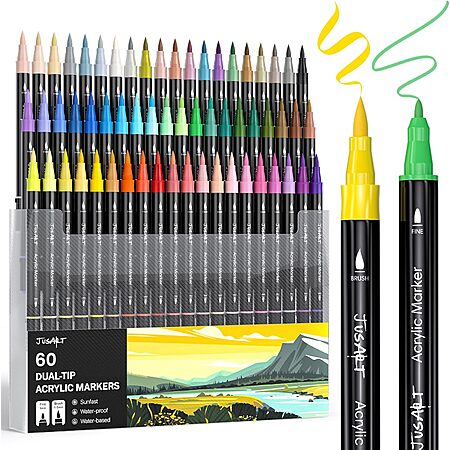 JusArt Dual Tip Acrylic Paint Pen Markers (Various) on sale from $9.99 9 - 30% with promo code