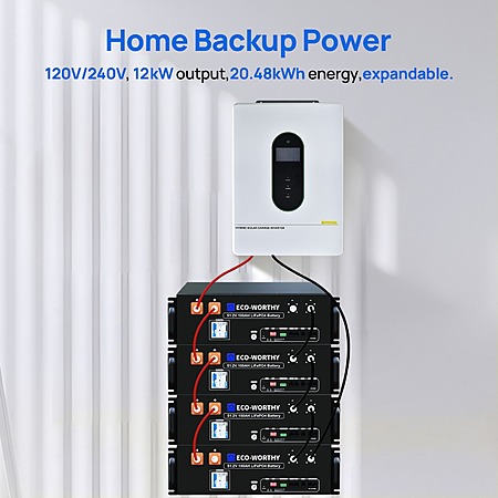ECO-WORTHY Home Backup Power: 4-Pack 48V 100Ah Battery + 12KW 48V Off-Grid Inverter $3450 + Free Shipping