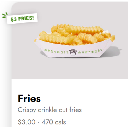 - Fries (regular crinkle) $3.00