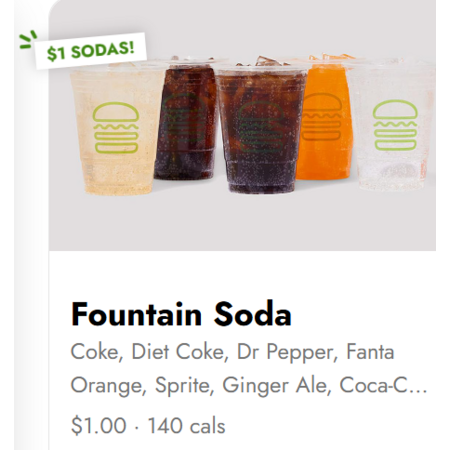 - Sodas (any size) $1.00