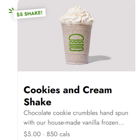 Shake Shack [shakeshack.com] currently offers the following promotions.