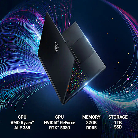 MSI - Stealth A16 AI+ - Copilot+PC- 16" 240Hz QHD+ OLED Ultra Thin Gaming Laptop - AMD Ryzen AI R9-365- 32GB -RTX 5080-1TB SSD - Core Black - Open Box starting at: $1739.99