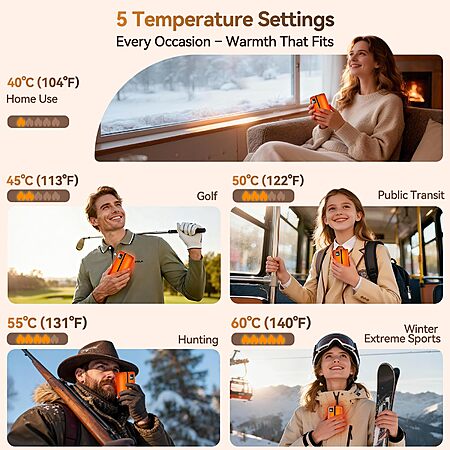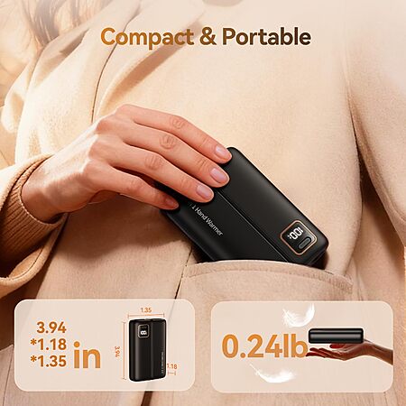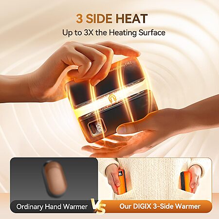 Hand Warmers Rechargeable 2 Pack, 3 Sided Fast Heating, 6000mAh Magnetic AI Electric Handwarmer with LED Light, Smart Display, 5 Heat Settings - $9.99