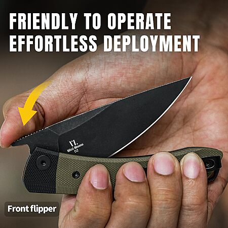 Friendly to Operate: Mini Momo pocket folding knife with pocket clip provides effortless deployment with a front flipper & liner lock mechanism.