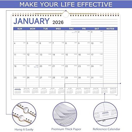 $3.99* | 11.5" x 14.5" Lortarl 2026 Hanging Wall Calendar at Amazon