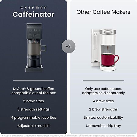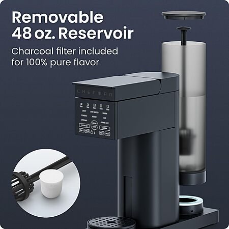 Chefman Caffeinator Single Serve Coffee Maker, Brew Kcups & Grounds, Drip Coffee Machine with, Iced Coffee Function, 48 oz. Removable Water Reservoir $99.99