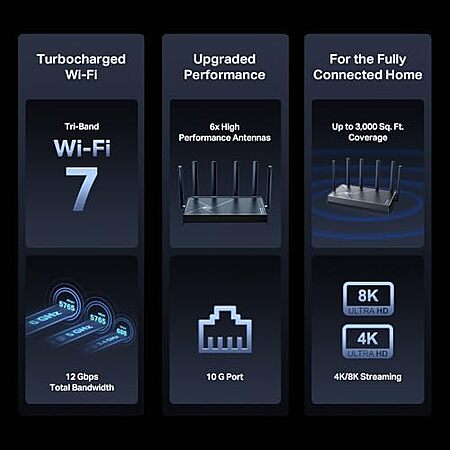 Model: TP-Link Archer BE12000 | Tri-Band Wi-Fi 7 Router | Includes Latest 6GHz Wi-Fi Band | New Wi-Fi 7 Features | 10G Connectivity | Works with Amazon Alexa and Google Assistant (Archer BE670)