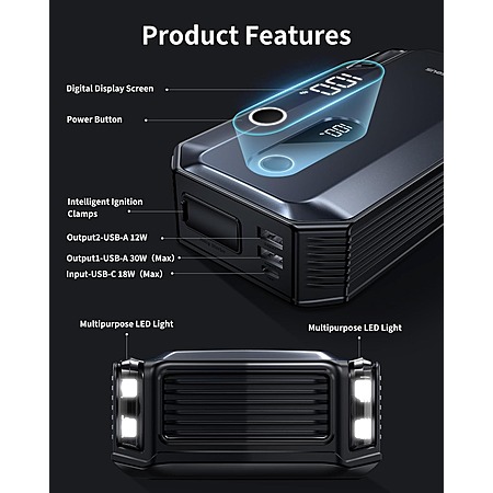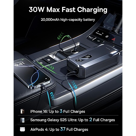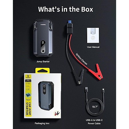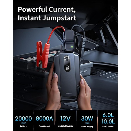Model: Baseus 8000A Jump Starter, 20000mAh Portable Jump Starter Battery Pack, 12V Car Battery 5 in 1 Jump Starter with 30W Fast Charging and LED Display, for Up to 10.0L Gas 6.0L Diesel Engines