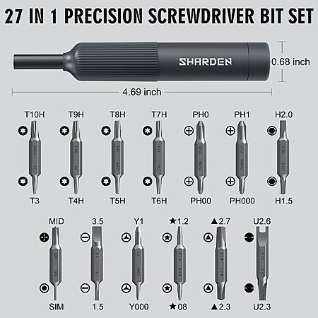 SHARDEN Direct via Amazon has 27-in-1 Sharden Multi Bit Precision Screwdriver Set on sale for $5.99 - 30% automatic discount at the checkout = $4.19. Shipping is free with Prime or on $35+ orders.