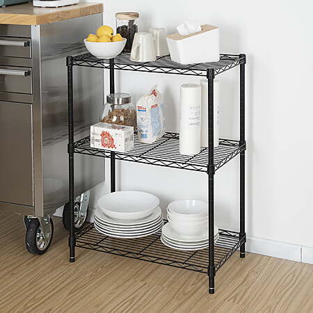 Hyper Tough Multipurpose 3-Tier Wire Shelving Rack, 750 lbs Capacity (black or chrome) - $29.97